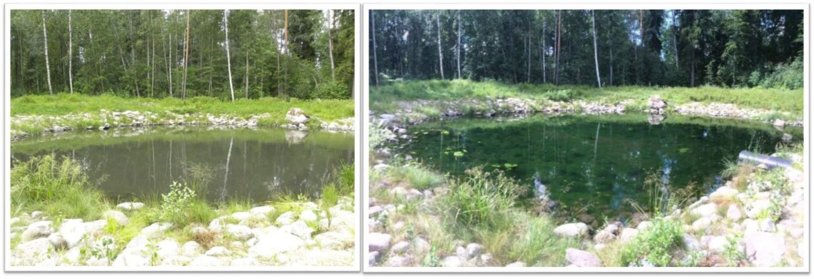 Kuva: Sammonlahden kosteikko ennen ja 2 viikkoa testin aloittamisen jälkeen 2016